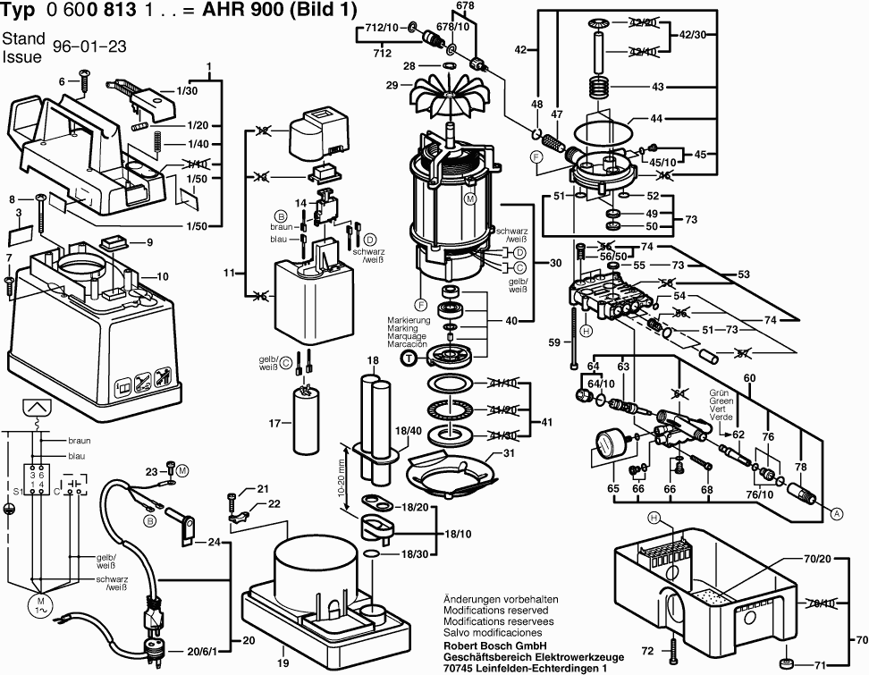 Vous trouverez ici toutes les pièces et dessins disponibles du 'Bosch 0600813103 ( AHR900 )'. De là, vous pouvez commander directement toutes les pièces souhaitées. De nombreuses pièces doivent être commandées auprès du fabricant, selon la marque, cela prend une à quatre semaines. Toutes les informations dont nous disposons se trouvent sur notre site Web, nous ne pouvons pas vous conseiller sur ce dont vous avez besoin, pour cela vous devrez retourner la machine pour réparation. Veuillez noter ce qui suit lors de la commande: