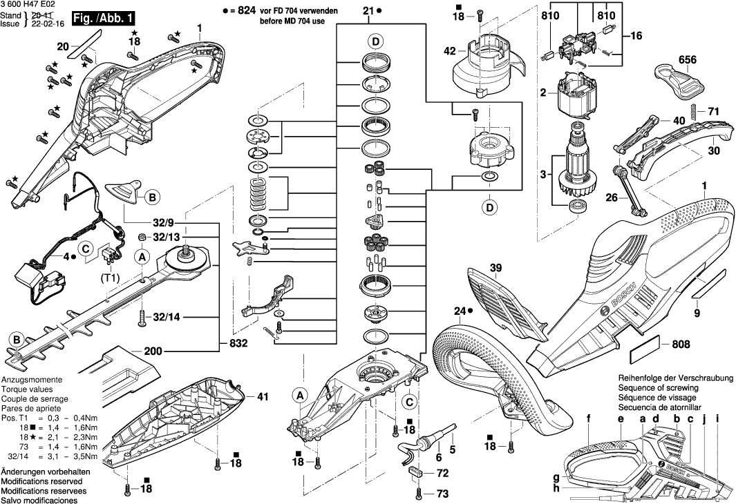 Vous trouverez ici toutes les pièces et dessins disponibles du 'Bosch 3600H47H02 ( AHS60-26 )'. De là, vous pouvez commander directement toutes les pièces souhaitées. De nombreuses pièces doivent être commandées auprès du fabricant, selon la marque, cela prend une à quatre semaines. Toutes les informations dont nous disposons se trouvent sur notre site Web, nous ne pouvons pas vous conseiller sur ce dont vous avez besoin, pour cela vous devrez retourner la machine pour réparation. Veuillez noter ce qui suit lors de la commande: