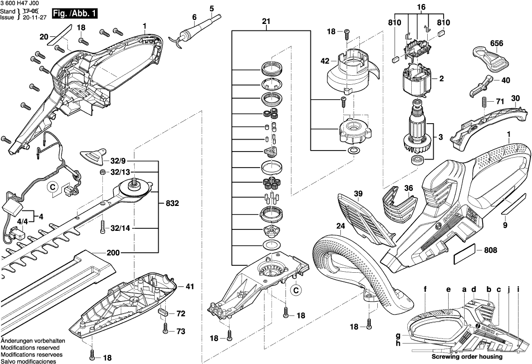 Vous trouverez ici toutes les pièces et dessins disponibles du 'Bosch 3600H47J00 ( AHS65-34 )'. De là, vous pouvez commander directement toutes les pièces souhaitées. De nombreuses pièces doivent être commandées auprès du fabricant, selon la marque, cela prend une à quatre semaines. Toutes les informations dont nous disposons se trouvent sur notre site Web, nous ne pouvons pas vous conseiller sur ce dont vous avez besoin, pour cela vous devrez retourner la machine pour réparation. Veuillez noter ce qui suit lors de la commande:
