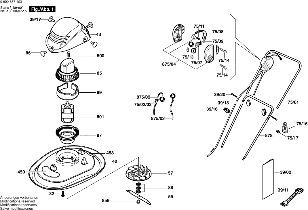 Vous trouverez ici toutes les pièces et dessins disponibles du 'Bosch 0600887103 ( ALM34 )'. De là, vous pouvez commander directement toutes les pièces souhaitées. De nombreuses pièces doivent être commandées auprès du fabricant, selon la marque, cela prend une à quatre semaines. Toutes les informations dont nous disposons se trouvent sur notre site Web, nous ne pouvons pas vous conseiller sur ce dont vous avez besoin, pour cela vous devrez retourner la machine pour réparation. Veuillez noter ce qui suit lors de la commande:
