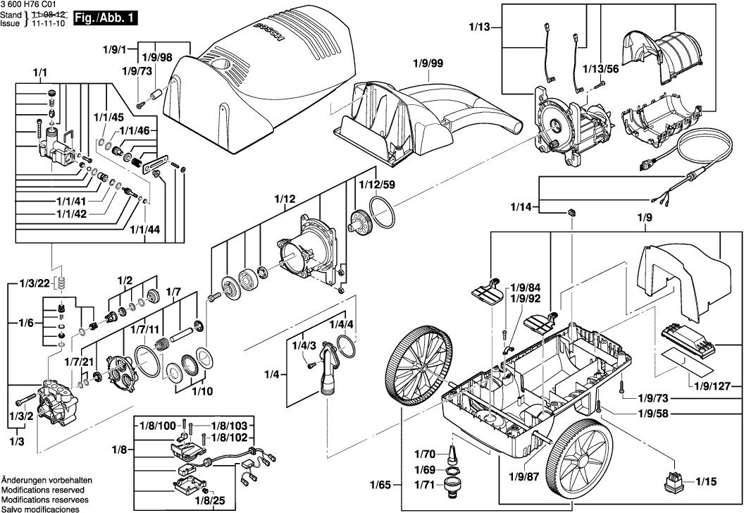 Vous trouverez ici toutes les pièces et dessins disponibles du 'Bosch 3600H76C01 ( AQUATAK110 )'. De là, vous pouvez commander directement toutes les pièces souhaitées. De nombreuses pièces doivent être commandées auprès du fabricant, selon la marque, cela prend une à quatre semaines. Toutes les informations dont nous disposons se trouvent sur notre site Web, nous ne pouvons pas vous conseiller sur ce dont vous avez besoin, pour cela vous devrez retourner la machine pour réparation. Veuillez noter ce qui suit lors de la commande: