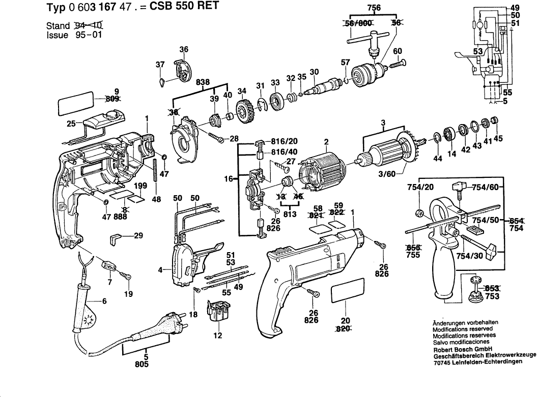 Vous trouverez ici toutes les pièces et dessins disponibles du 'Bosch 0603167470 ( CSB550RET )'. De là, vous pouvez commander directement toutes les pièces souhaitées. De nombreuses pièces doivent être commandées auprès du fabricant, selon la marque, cela prend une à quatre semaines. Toutes les informations dont nous disposons se trouvent sur notre site Web, nous ne pouvons pas vous conseiller sur ce dont vous avez besoin, pour cela vous devrez retourner la machine pour réparation. Veuillez noter ce qui suit lors de la commande: