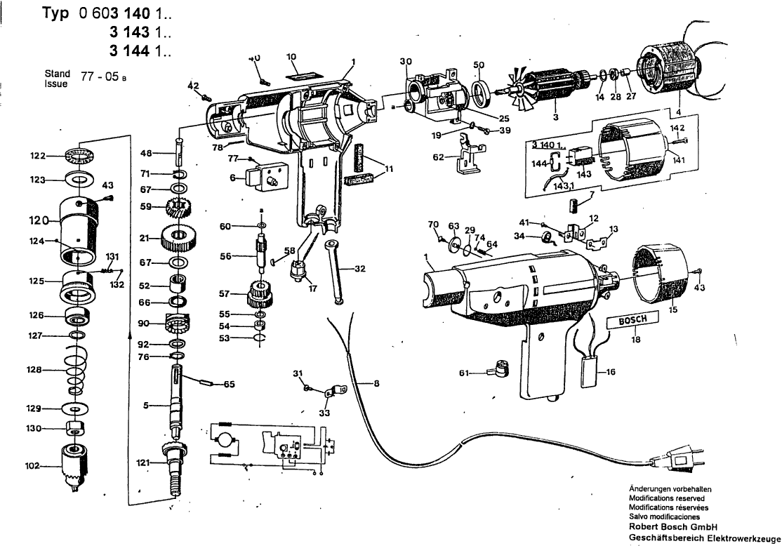 Vous trouverez ici toutes les pièces et dessins disponibles du 'Bosch 0603144103 ( E21SB )'. De là, vous pouvez commander directement toutes les pièces souhaitées. De nombreuses pièces doivent être commandées auprès du fabricant, selon la marque, cela prend une à quatre semaines. Toutes les informations dont nous disposons se trouvent sur notre site Web, nous ne pouvons pas vous conseiller sur ce dont vous avez besoin, pour cela vous devrez retourner la machine pour réparation. Veuillez noter ce qui suit lors de la commande: