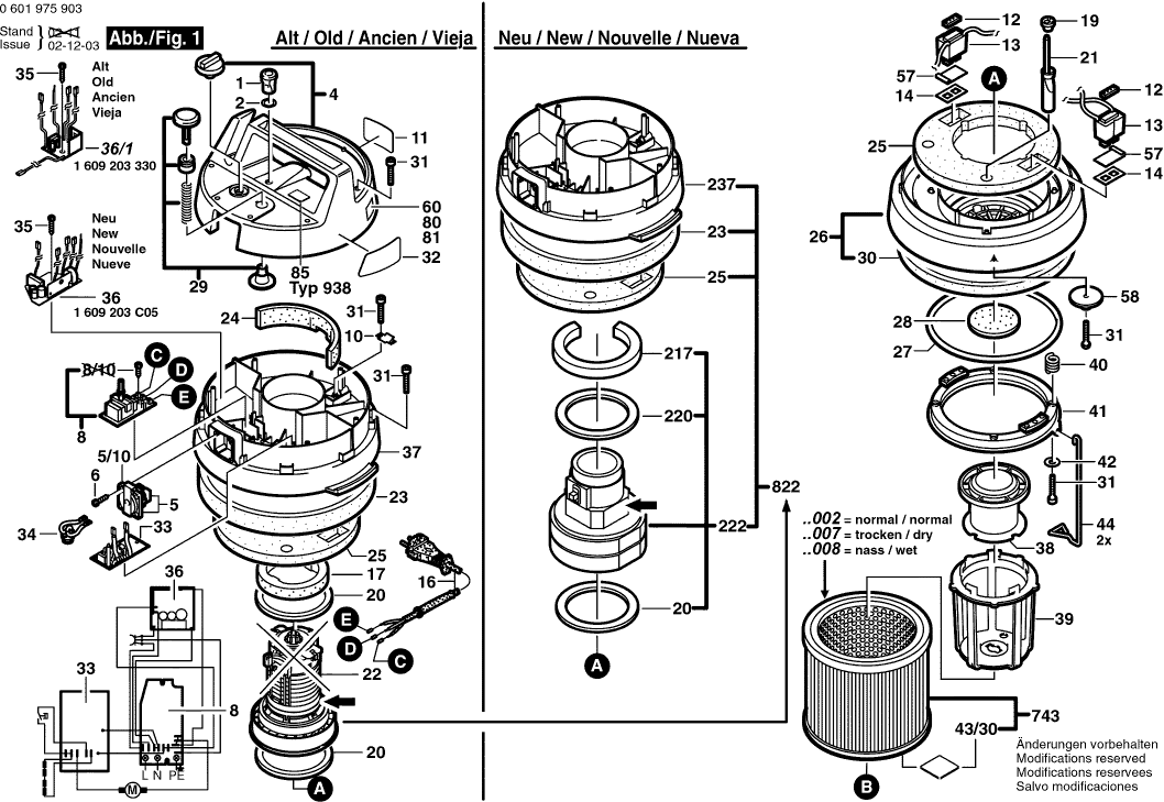 Vous trouverez ici toutes les pièces et dessins disponibles du 'Bosch 0601975903 ( GAS12-50RF )'. De là, vous pouvez commander directement toutes les pièces souhaitées. De nombreuses pièces doivent être commandées auprès du fabricant, selon la marque, cela prend une à quatre semaines. Toutes les informations dont nous disposons se trouvent sur notre site Web, nous ne pouvons pas vous conseiller sur ce dont vous avez besoin, pour cela vous devrez retourner la machine pour réparation. Veuillez noter ce qui suit lors de la commande: