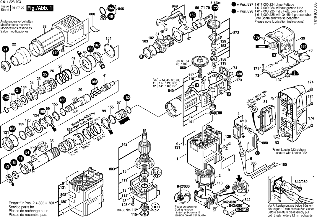 Liste de pièces de rechange des Bosch 0611223703 ( GBH10DC )