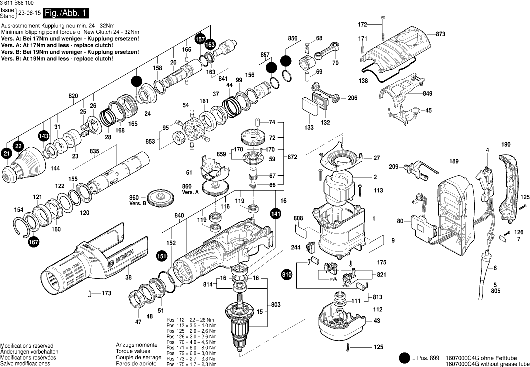 Liste de pièces de rechange des Bosch 3611B66100 ( GBH12-52D )