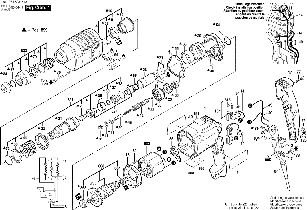 Liste de pièces de rechange des Bosch 0611234608 ( GBH2-20SE )