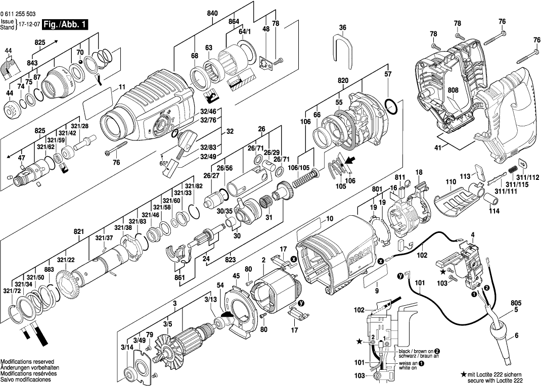 Vous trouverez ici toutes les pièces et dessins disponibles du 'Bosch 0611255503 ( GBH2-26DBR )'. De là, vous pouvez commander directement toutes les pièces souhaitées. De nombreuses pièces doivent être commandées auprès du fabricant, selon la marque, cela prend une à quatre semaines. Toutes les informations dont nous disposons se trouvent sur notre site Web, nous ne pouvons pas vous conseiller sur ce dont vous avez besoin, pour cela vous devrez retourner la machine pour réparation. Veuillez noter ce qui suit lors de la commande: