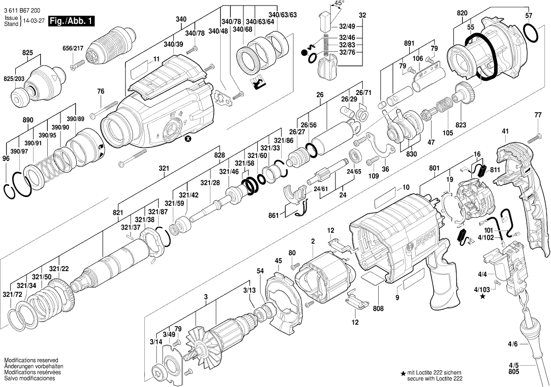 Vous trouverez ici toutes les pièces et dessins disponibles du 'Bosch 3611B67240 ( GBH2-28DFV )'. De là, vous pouvez commander directement toutes les pièces souhaitées. De nombreuses pièces doivent être commandées auprès du fabricant, selon la marque, cela prend une à quatre semaines. Toutes les informations dont nous disposons se trouvent sur notre site Web, nous ne pouvons pas vous conseiller sur ce dont vous avez besoin, pour cela vous devrez retourner la machine pour réparation. Veuillez noter ce qui suit lors de la commande: