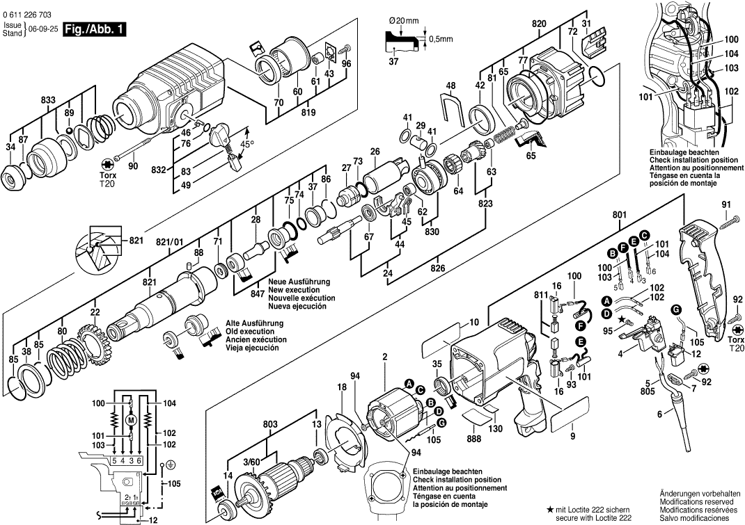 Liste de pièces de rechange des Bosch 0611226703 ( GBH2SR )