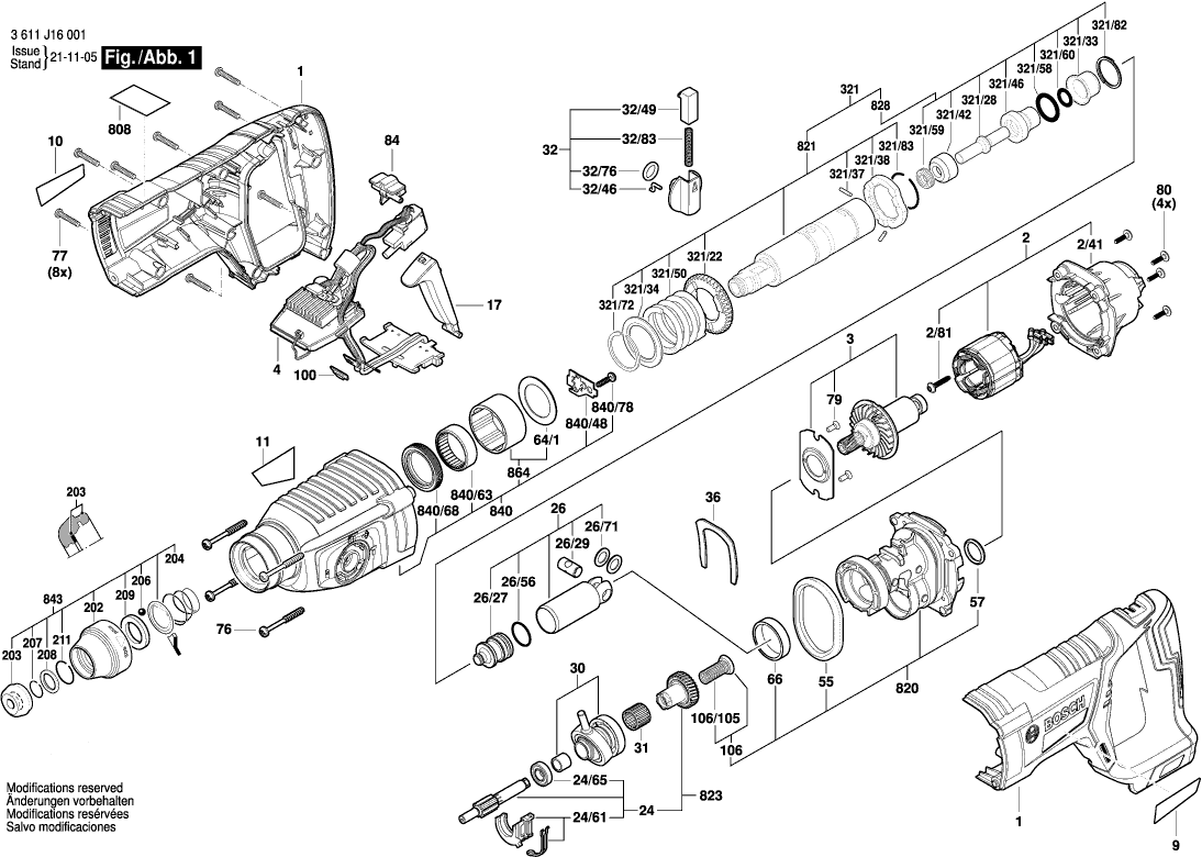 Vous trouverez ici toutes les pièces et dessins disponibles du 'Bosch 3611J16050 ( GBH18V-26D )'. De là, vous pouvez commander directement toutes les pièces souhaitées. De nombreuses pièces doivent être commandées auprès du fabricant, selon la marque, cela prend une à quatre semaines. Toutes les informations dont nous disposons se trouvent sur notre site Web, nous ne pouvons pas vous conseiller sur ce dont vous avez besoin, pour cela vous devrez retourner la machine pour réparation. Veuillez noter ce qui suit lors de la commande: