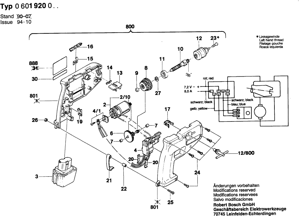 Liste de pièces de rechange des Bosch 0601920003 ( GBM7,2VRL )