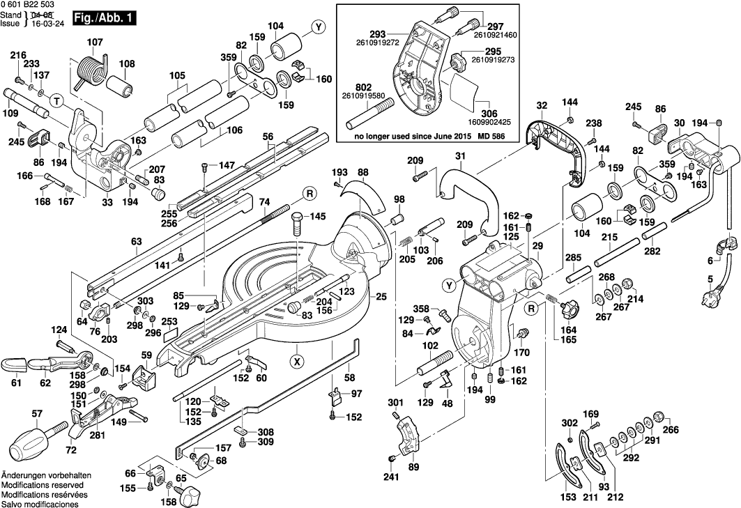 Vous trouverez ici toutes les pièces et dessins disponibles du 'Bosch 0601B22532 ( GCM10SD )'. De là, vous pouvez commander directement toutes les pièces souhaitées. De nombreuses pièces doivent être commandées auprès du fabricant, selon la marque, cela prend une à quatre semaines. Toutes les informations dont nous disposons se trouvent sur notre site Web, nous ne pouvons pas vous conseiller sur ce dont vous avez besoin, pour cela vous devrez retourner la machine pour réparation. Veuillez noter ce qui suit lors de la commande: