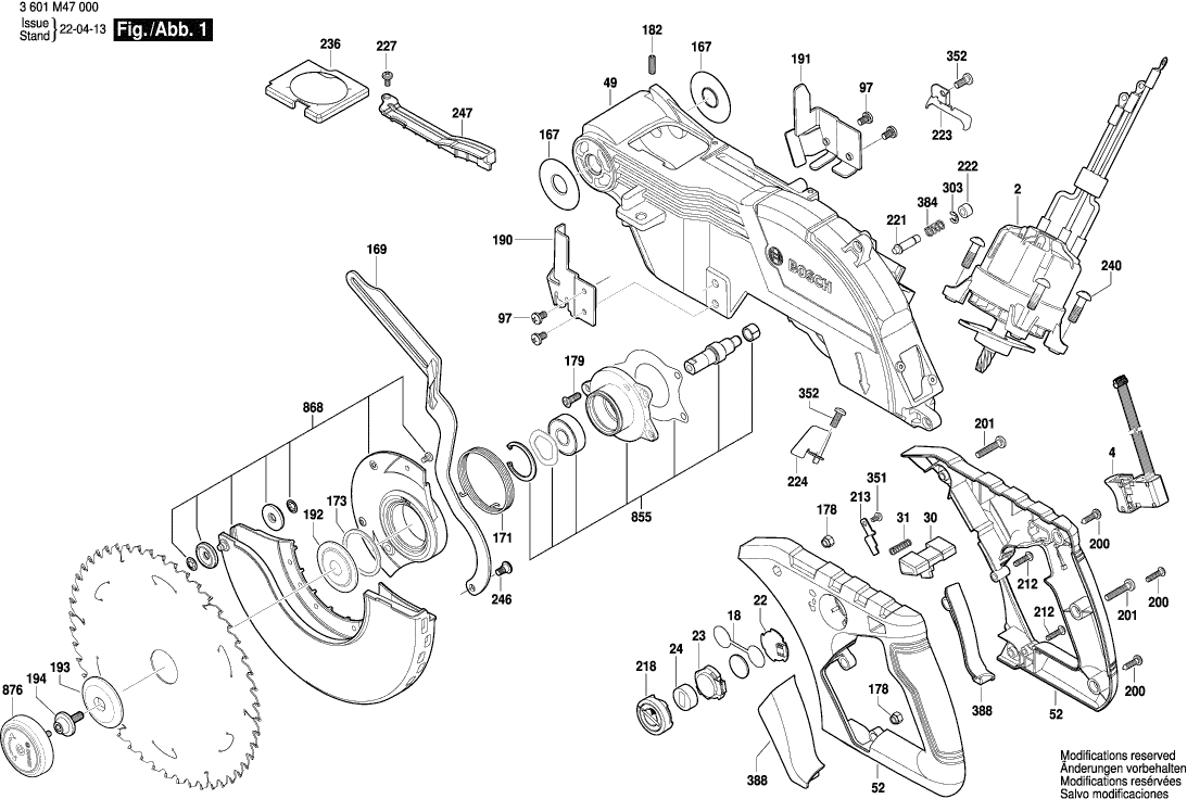 Vous trouverez ici toutes les pièces et dessins disponibles du 'Bosch 3601M47000 ( GCM18V-216DC )'. De là, vous pouvez commander directement toutes les pièces souhaitées. De nombreuses pièces doivent être commandées auprès du fabricant, selon la marque, cela prend une à quatre semaines. Toutes les informations dont nous disposons se trouvent sur notre site Web, nous ne pouvons pas vous conseiller sur ce dont vous avez besoin, pour cela vous devrez retourner la machine pour réparation. Veuillez noter ce qui suit lors de la commande: