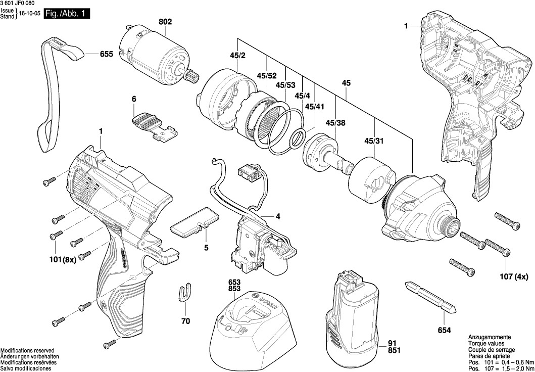 Liste de pièces de rechange des Bosch 3601JF0080 ( GDR120-LI )