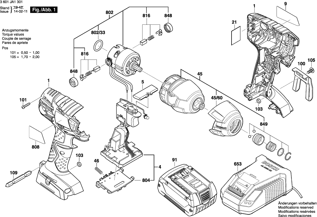 Dessins des Bosch 3601JA1301 ( GDR18V-LI )
