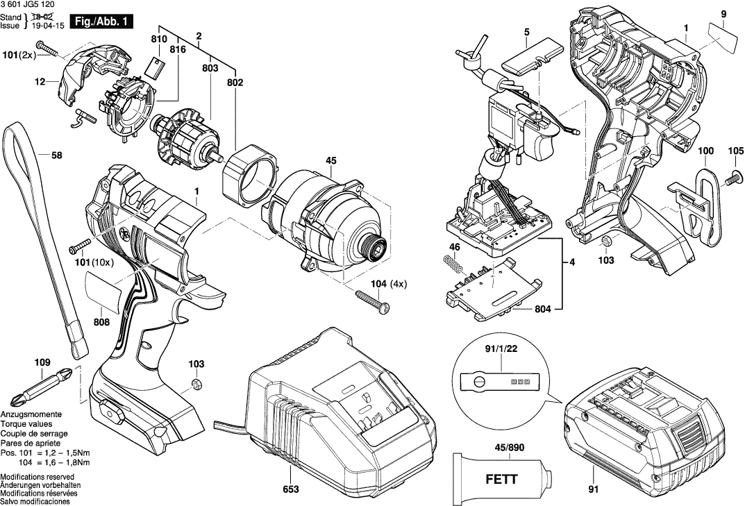 Liste de pièces de rechange des Bosch 3601JG5120 ( GDR180-LI )