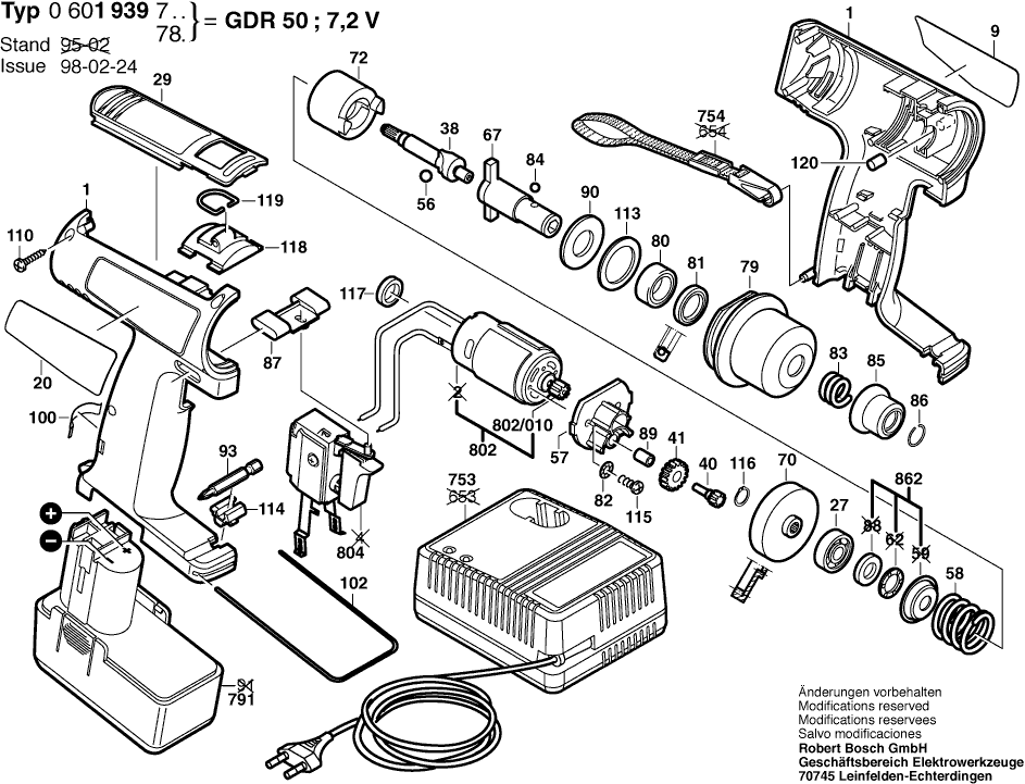 Vous trouverez ici toutes les pièces et dessins disponibles du 'Bosch 0601939703 ( GDR50 )'. De là, vous pouvez commander directement toutes les pièces souhaitées. De nombreuses pièces doivent être commandées auprès du fabricant, selon la marque, cela prend une à quatre semaines. Toutes les informations dont nous disposons se trouvent sur notre site Web, nous ne pouvons pas vous conseiller sur ce dont vous avez besoin, pour cela vous devrez retourner la machine pour réparation. Veuillez noter ce qui suit lors de la commande: