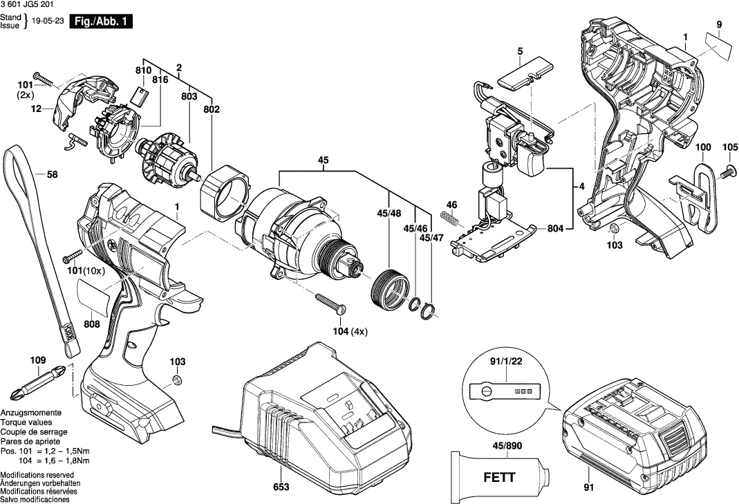 Vous trouverez ici toutes les pièces et dessins disponibles du 'Bosch 3601JG5201 ( GDX18V-180 )'. De là, vous pouvez commander directement toutes les pièces souhaitées. De nombreuses pièces doivent être commandées auprès du fabricant, selon la marque, cela prend une à quatre semaines. Toutes les informations dont nous disposons se trouvent sur notre site Web, nous ne pouvons pas vous conseiller sur ce dont vous avez besoin, pour cela vous devrez retourner la machine pour réparation. Veuillez noter ce qui suit lors de la commande: