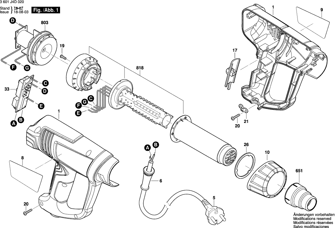 Liste de pièces de rechange des Bosch 3601J4D020 ( GHG180 )