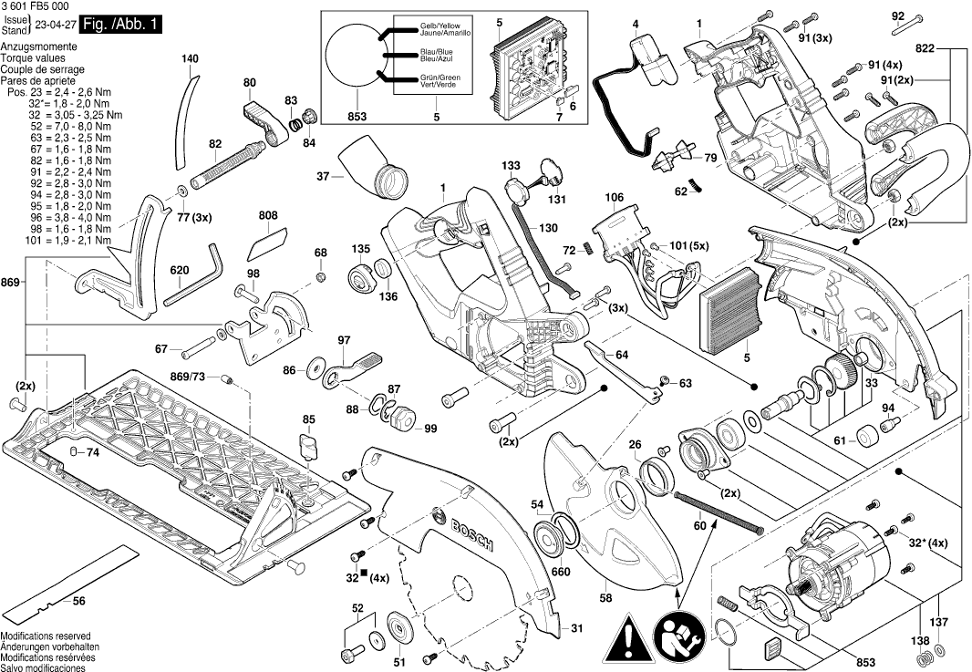 Vous trouverez ici toutes les pièces et dessins disponibles du 'Bosch 3601FB5000 ( GKS18V-68C )'. De là, vous pouvez commander directement toutes les pièces souhaitées. De nombreuses pièces doivent être commandées auprès du fabricant, selon la marque, cela prend une à quatre semaines. Toutes les informations dont nous disposons se trouvent sur notre site Web, nous ne pouvons pas vous conseiller sur ce dont vous avez besoin, pour cela vous devrez retourner la machine pour réparation. Veuillez noter ce qui suit lors de la commande: