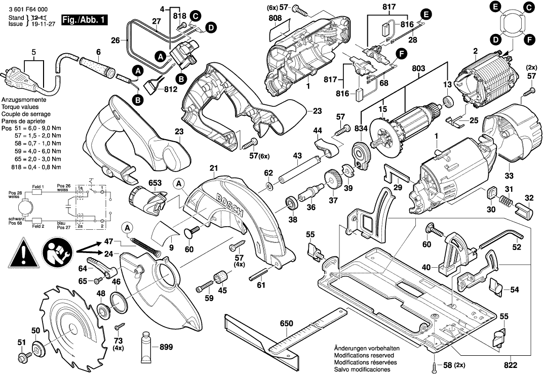 Liste de pièces de rechange des Bosch 3601F64000 ( GKS55 )