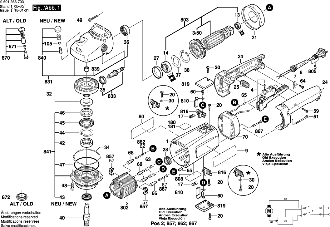 Vous trouverez ici toutes les pièces et dessins disponibles du 'Bosch 0601366737 ( GPO12E )'. De là, vous pouvez commander directement toutes les pièces souhaitées. De nombreuses pièces doivent être commandées auprès du fabricant, selon la marque, cela prend une à quatre semaines. Toutes les informations dont nous disposons se trouvent sur notre site Web, nous ne pouvons pas vous conseiller sur ce dont vous avez besoin, pour cela vous devrez retourner la machine pour réparation. Veuillez noter ce qui suit lors de la commande: