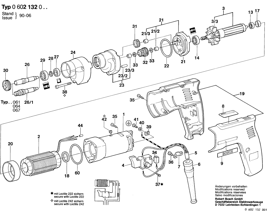 Vous trouverez ici toutes les pièces et dessins disponibles du 'Bosch 0602132001 ( GR.57 )'. De là, vous pouvez commander directement toutes les pièces souhaitées. De nombreuses pièces doivent être commandées auprès du fabricant, selon la marque, cela prend une à quatre semaines. Toutes les informations dont nous disposons se trouvent sur notre site Web, nous ne pouvons pas vous conseiller sur ce dont vous avez besoin, pour cela vous devrez retourner la machine pour réparation. Veuillez noter ce qui suit lors de la commande: