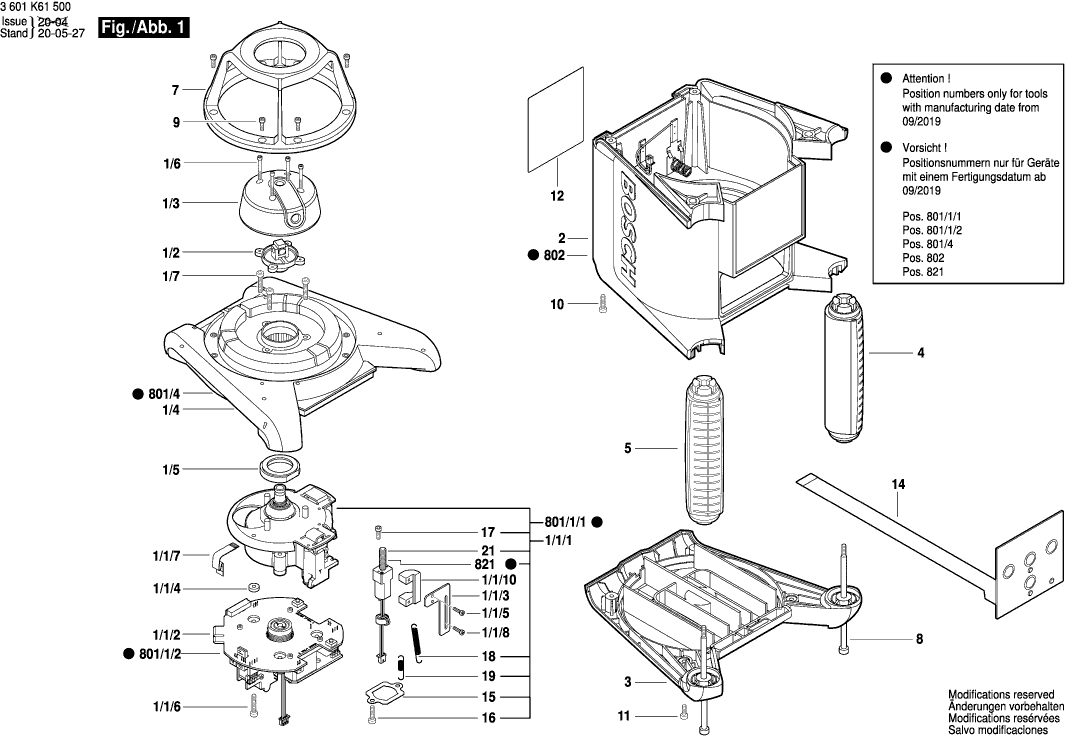 Vous trouverez ici toutes les pièces et dessins disponibles du 'Bosch 3601K61700 ( GRL300HVG )'. De là, vous pouvez commander directement toutes les pièces souhaitées. De nombreuses pièces doivent être commandées auprès du fabricant, selon la marque, cela prend une à quatre semaines. Toutes les informations dont nous disposons se trouvent sur notre site Web, nous ne pouvons pas vous conseiller sur ce dont vous avez besoin, pour cela vous devrez retourner la machine pour réparation. Veuillez noter ce qui suit lors de la commande: