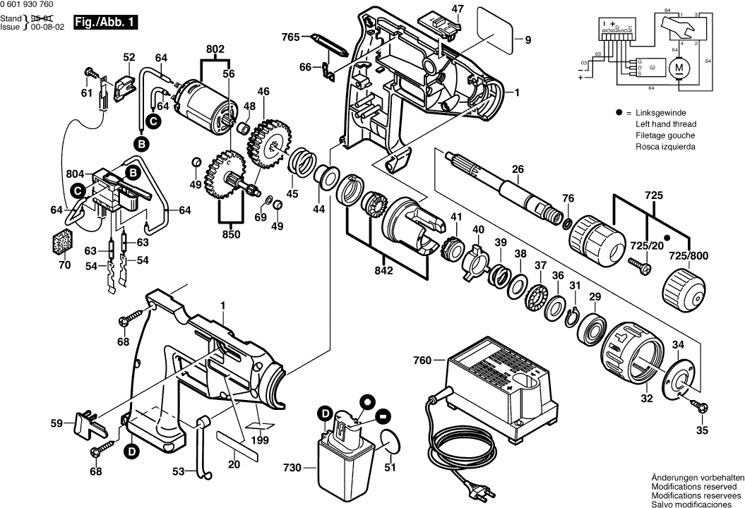 Liste de pièces de rechange des Bosch 0601930760 ( GSB9,6VES )