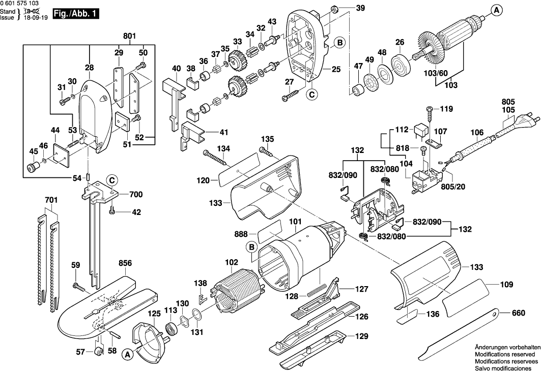 Vous trouverez ici toutes les pièces et dessins disponibles du 'Bosch 0601575143 ( GSG300 )'. De là, vous pouvez commander directement toutes les pièces souhaitées. De nombreuses pièces doivent être commandées auprès du fabricant, selon la marque, cela prend une à quatre semaines. Toutes les informations dont nous disposons se trouvent sur notre site Web, nous ne pouvons pas vous conseiller sur ce dont vous avez besoin, pour cela vous devrez retourner la machine pour réparation. Veuillez noter ce qui suit lors de la commande: