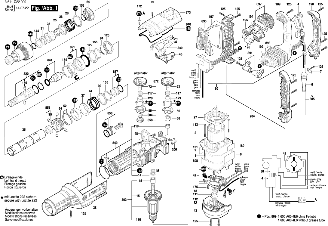 Liste de pièces de rechange des Bosch 3611C22000 ( GSH7VC )