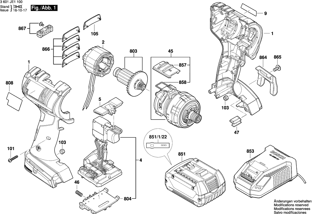 Vous trouverez ici toutes les pièces et dessins disponibles du 'Bosch 3601JE1100 ( GSR18V-ECFC2 )'. De là, vous pouvez commander directement toutes les pièces souhaitées. De nombreuses pièces doivent être commandées auprès du fabricant, selon la marque, cela prend une à quatre semaines. Toutes les informations dont nous disposons se trouvent sur notre site Web, nous ne pouvons pas vous conseiller sur ce dont vous avez besoin, pour cela vous devrez retourner la machine pour réparation. Veuillez noter ce qui suit lors de la commande: