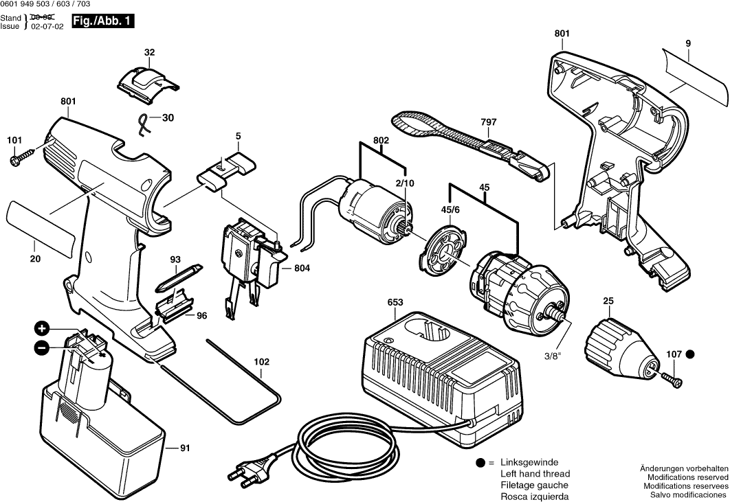 Vous trouverez ici toutes les pièces et dessins disponibles du 'Bosch 0601949603 ( GSR9,6V )'. De là, vous pouvez commander directement toutes les pièces souhaitées. De nombreuses pièces doivent être commandées auprès du fabricant, selon la marque, cela prend une à quatre semaines. Toutes les informations dont nous disposons se trouvent sur notre site Web, nous ne pouvons pas vous conseiller sur ce dont vous avez besoin, pour cela vous devrez retourner la machine pour réparation. Veuillez noter ce qui suit lors de la commande: