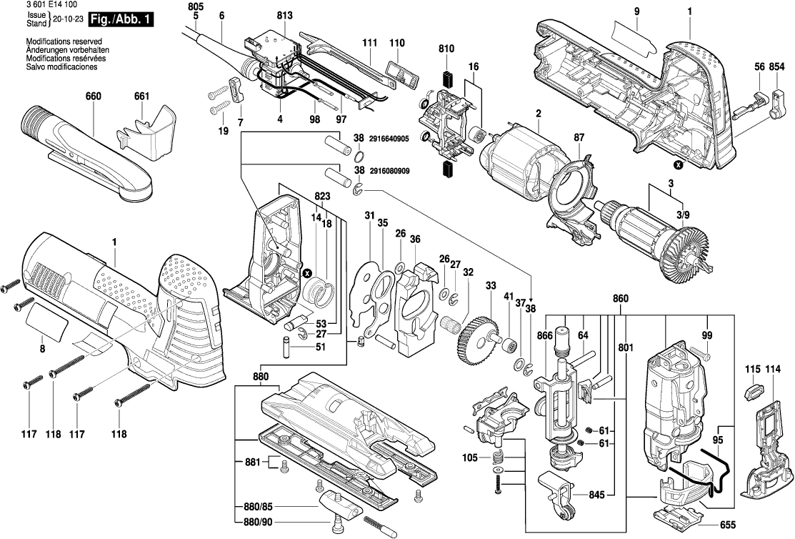 Vous trouverez ici toutes les pièces et dessins disponibles du 'Bosch 3601E14100 ( GST1400CE )'. De là, vous pouvez commander directement toutes les pièces souhaitées. De nombreuses pièces doivent être commandées auprès du fabricant, selon la marque, cela prend une à quatre semaines. Toutes les informations dont nous disposons se trouvent sur notre site Web, nous ne pouvons pas vous conseiller sur ce dont vous avez besoin, pour cela vous devrez retourner la machine pour réparation. Veuillez noter ce qui suit lors de la commande: