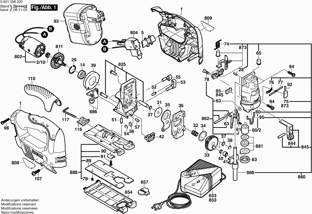 Vous trouverez ici toutes les pièces et dessins disponibles du 'Bosch 0601598220 ( GST24V )'. De là, vous pouvez commander directement toutes les pièces souhaitées. De nombreuses pièces doivent être commandées auprès du fabricant, selon la marque, cela prend une à quatre semaines. Toutes les informations dont nous disposons se trouvent sur notre site Web, nous ne pouvons pas vous conseiller sur ce dont vous avez besoin, pour cela vous devrez retourner la machine pour réparation. Veuillez noter ce qui suit lors de la commande: