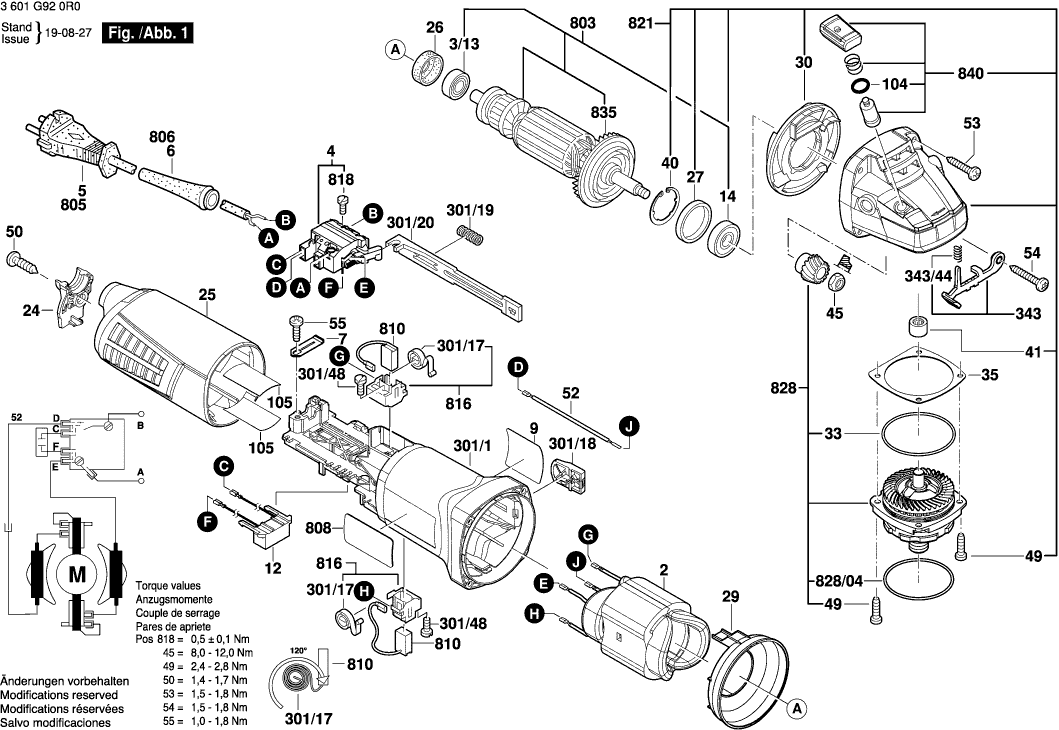 Vous trouverez ici toutes les pièces et dessins disponibles du 'Bosch 3601G920R0 ( GWS11-125 )'. De là, vous pouvez commander directement toutes les pièces souhaitées. De nombreuses pièces doivent être commandées auprès du fabricant, selon la marque, cela prend une à quatre semaines. Toutes les informations dont nous disposons se trouvent sur notre site Web, nous ne pouvons pas vous conseiller sur ce dont vous avez besoin, pour cela vous devrez retourner la machine pour réparation. Veuillez noter ce qui suit lors de la commande: