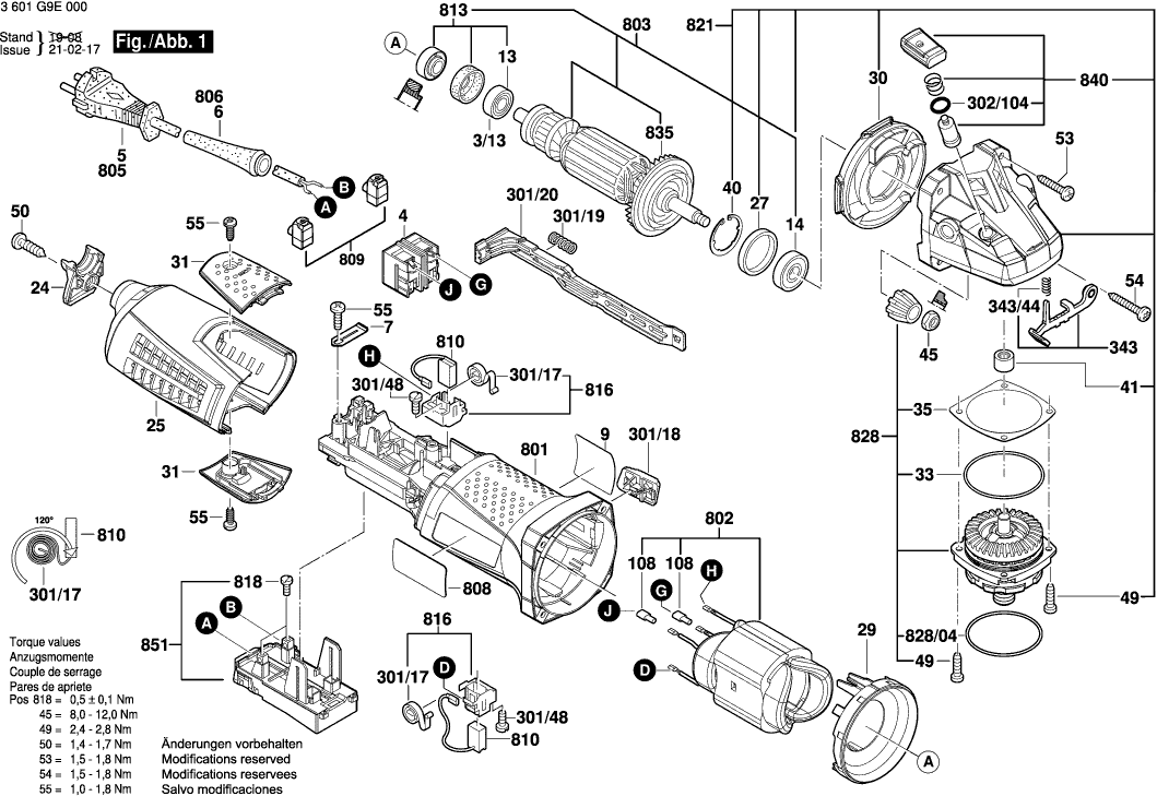 Liste de pièces de rechange des Bosch 3601G9E000 ( GWS13-125CI )