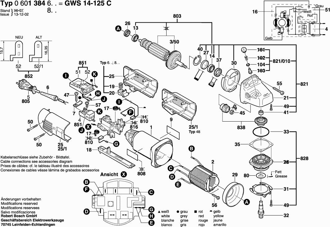 Vous trouverez ici toutes les pièces et dessins disponibles du 'Bosch 0601384603 ( GWS14-125C )'. De là, vous pouvez commander directement toutes les pièces souhaitées. De nombreuses pièces doivent être commandées auprès du fabricant, selon la marque, cela prend une à quatre semaines. Toutes les informations dont nous disposons se trouvent sur notre site Web, nous ne pouvons pas vous conseiller sur ce dont vous avez besoin, pour cela vous devrez retourner la machine pour réparation. Veuillez noter ce qui suit lors de la commande: