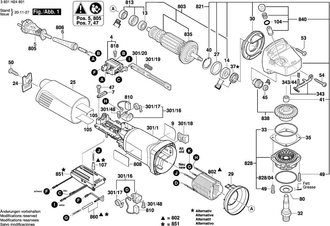 Vous trouverez ici toutes les pièces et dessins disponibles du 'Bosch 3601H24805 ( GWS1400 )'. De là, vous pouvez commander directement toutes les pièces souhaitées. De nombreuses pièces doivent être commandées auprès du fabricant, selon la marque, cela prend une à quatre semaines. Toutes les informations dont nous disposons se trouvent sur notre site Web, nous ne pouvons pas vous conseiller sur ce dont vous avez besoin, pour cela vous devrez retourner la machine pour réparation. Veuillez noter ce qui suit lors de la commande: