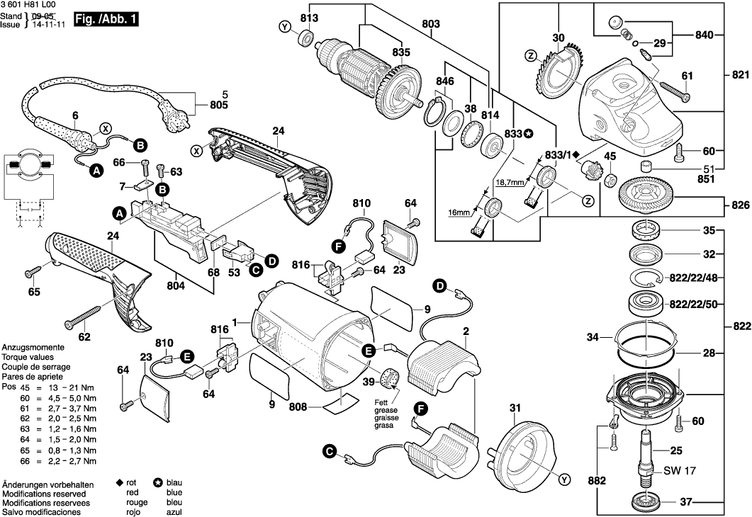 Liste de pièces de rechange des Bosch 3601H82100 ( GWS22-230H )