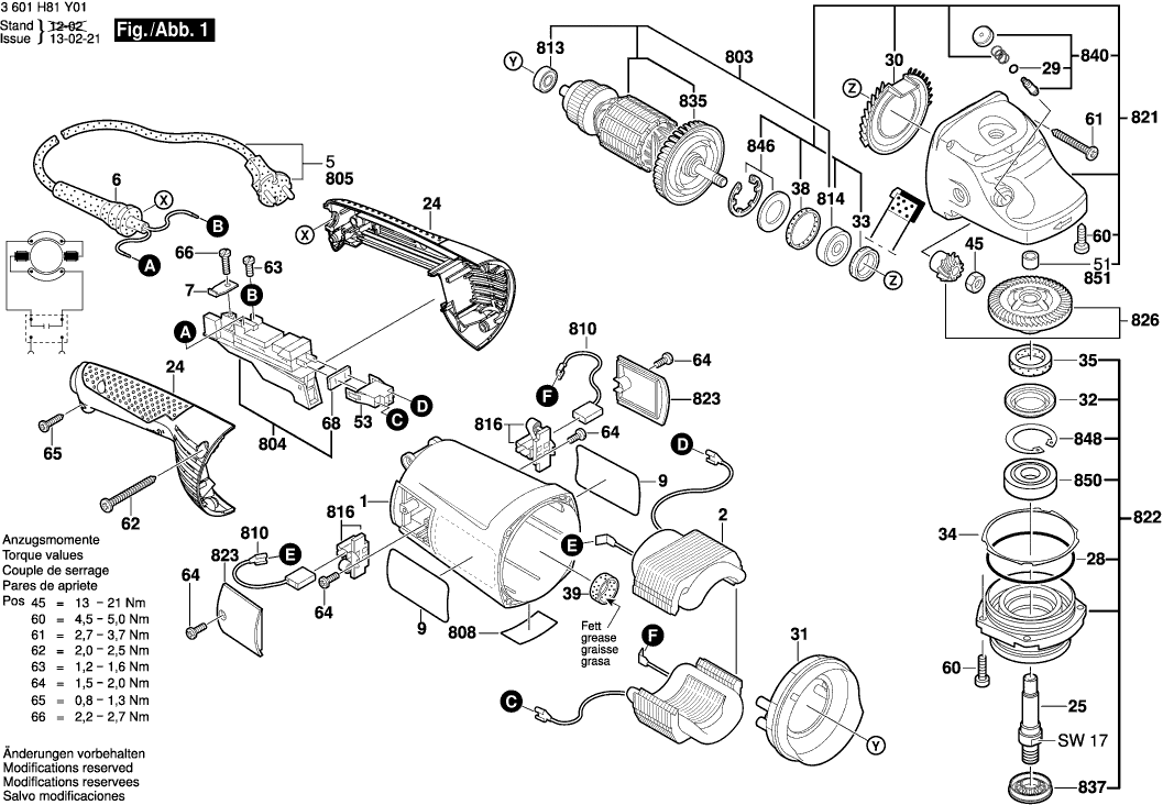 Vous trouverez ici toutes les pièces et dessins disponibles du 'Bosch 3601H82X01 ( GWS22-230H )'. De là, vous pouvez commander directement toutes les pièces souhaitées. De nombreuses pièces doivent être commandées auprès du fabricant, selon la marque, cela prend une à quatre semaines. Toutes les informations dont nous disposons se trouvent sur notre site Web, nous ne pouvons pas vous conseiller sur ce dont vous avez besoin, pour cela vous devrez retourner la machine pour réparation. Veuillez noter ce qui suit lors de la commande: