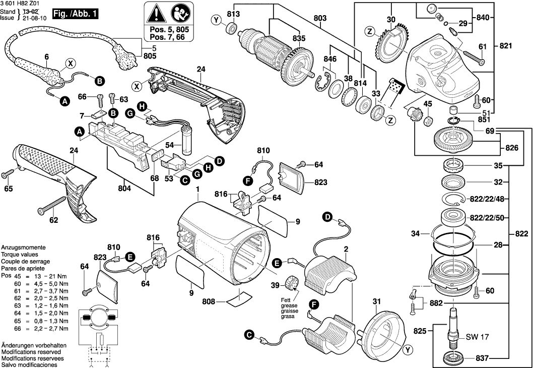 Liste de pièces de rechange des Bosch 3601H82Z01 ( GWS22-230JH )