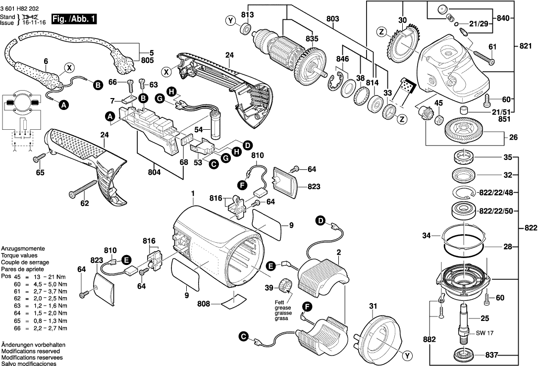 Vous trouverez ici toutes les pièces et dessins disponibles du 'Bosch 3601H82202 ( GWS22-230JH )'. De là, vous pouvez commander directement toutes les pièces souhaitées. De nombreuses pièces doivent être commandées auprès du fabricant, selon la marque, cela prend une à quatre semaines. Toutes les informations dont nous disposons se trouvent sur notre site Web, nous ne pouvons pas vous conseiller sur ce dont vous avez besoin, pour cela vous devrez retourner la machine pour réparation. Veuillez noter ce qui suit lors de la commande: