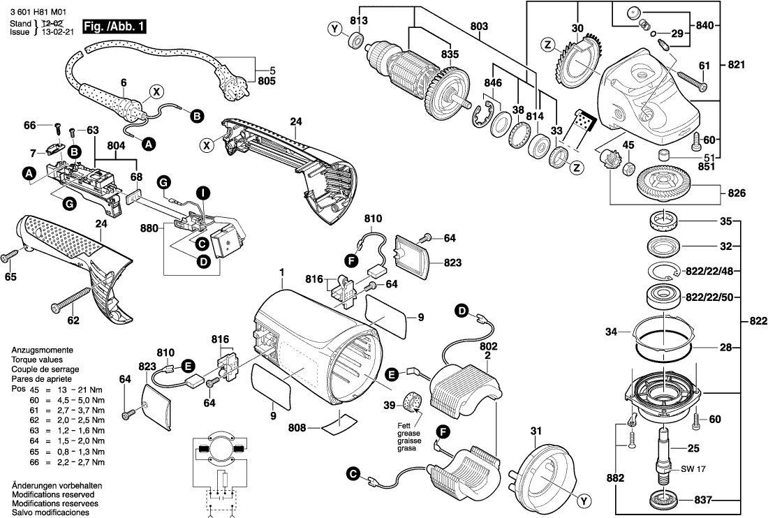 Vous trouverez ici toutes les pièces et dessins disponibles du 'Bosch 3601H82M01 ( GWS22-230JH )'. De là, vous pouvez commander directement toutes les pièces souhaitées. De nombreuses pièces doivent être commandées auprès du fabricant, selon la marque, cela prend une à quatre semaines. Toutes les informations dont nous disposons se trouvent sur notre site Web, nous ne pouvons pas vous conseiller sur ce dont vous avez besoin, pour cela vous devrez retourner la machine pour réparation. Veuillez noter ce qui suit lors de la commande: