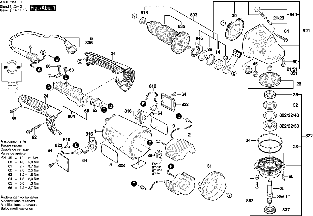 Vous trouverez ici toutes les pièces et dessins disponibles du 'Bosch 3601H84181 ( GWS24-230H )'. De là, vous pouvez commander directement toutes les pièces souhaitées. De nombreuses pièces doivent être commandées auprès du fabricant, selon la marque, cela prend une à quatre semaines. Toutes les informations dont nous disposons se trouvent sur notre site Web, nous ne pouvons pas vous conseiller sur ce dont vous avez besoin, pour cela vous devrez retourner la machine pour réparation. Veuillez noter ce qui suit lors de la commande: