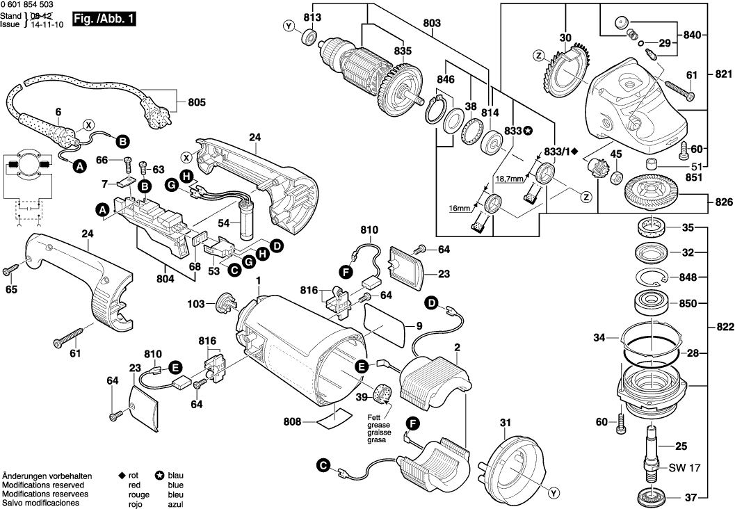 Vous trouverez ici toutes les pièces et dessins disponibles du 'Bosch 0601854503 ( GWS24-230JH )'. De là, vous pouvez commander directement toutes les pièces souhaitées. De nombreuses pièces doivent être commandées auprès du fabricant, selon la marque, cela prend une à quatre semaines. Toutes les informations dont nous disposons se trouvent sur notre site Web, nous ne pouvons pas vous conseiller sur ce dont vous avez besoin, pour cela vous devrez retourner la machine pour réparation. Veuillez noter ce qui suit lors de la commande: