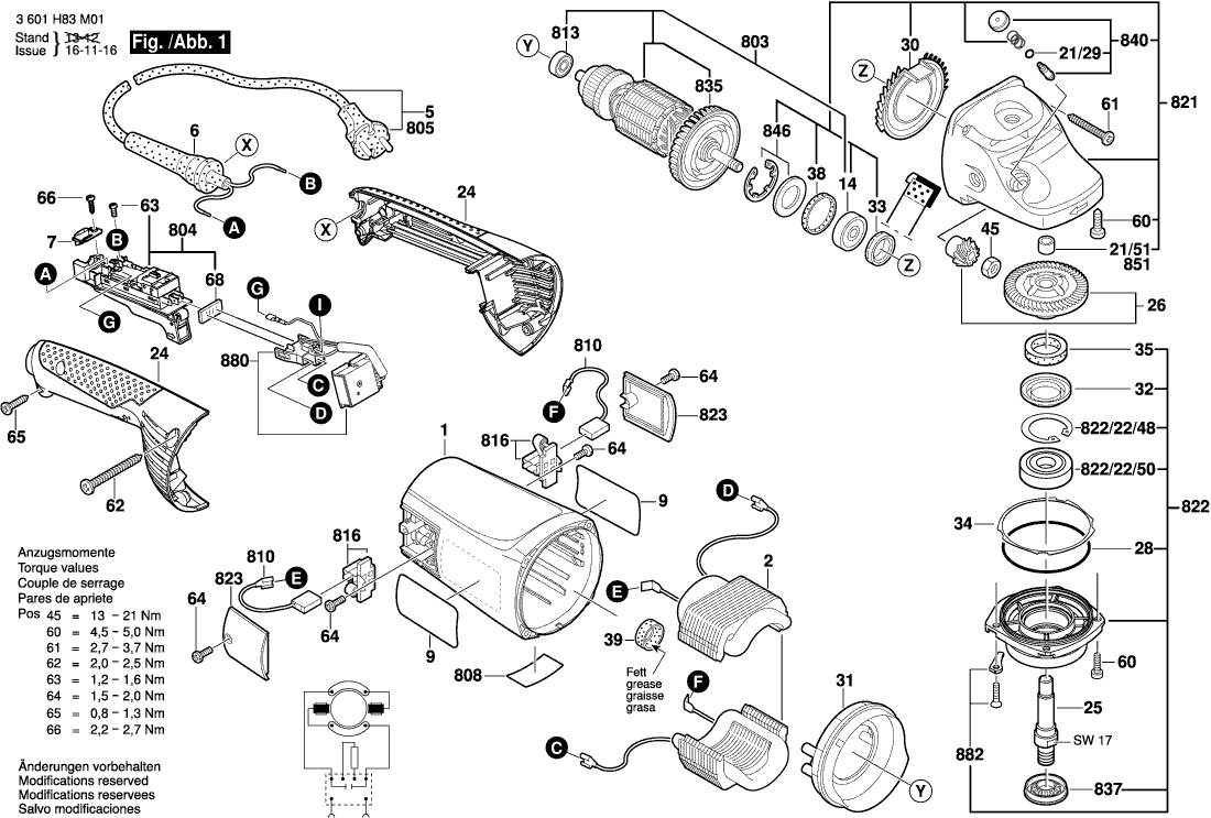 Vous trouverez ici toutes les pièces et dessins disponibles du 'Bosch 3601H84M31 ( GWS24-230JH )'. De là, vous pouvez commander directement toutes les pièces souhaitées. De nombreuses pièces doivent être commandées auprès du fabricant, selon la marque, cela prend une à quatre semaines. Toutes les informations dont nous disposons se trouvent sur notre site Web, nous ne pouvons pas vous conseiller sur ce dont vous avez besoin, pour cela vous devrez retourner la machine pour réparation. Veuillez noter ce qui suit lors de la commande: