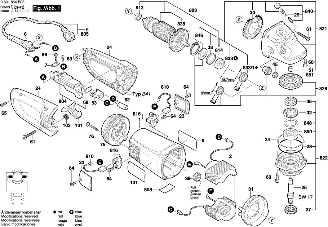 Vous trouverez ici toutes les pièces et dessins disponibles du 'Bosch 0601855B03 ( GWS26-180BV )'. De là, vous pouvez commander directement toutes les pièces souhaitées. De nombreuses pièces doivent être commandées auprès du fabricant, selon la marque, cela prend une à quatre semaines. Toutes les informations dont nous disposons se trouvent sur notre site Web, nous ne pouvons pas vous conseiller sur ce dont vous avez besoin, pour cela vous devrez retourner la machine pour réparation. Veuillez noter ce qui suit lors de la commande: