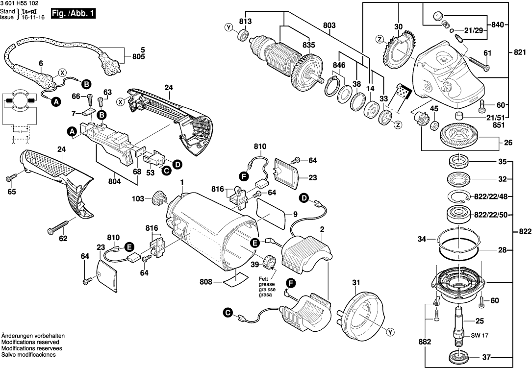 Vous trouverez ici toutes les pièces et dessins disponibles du 'Bosch 3601H55102 ( GWS26-180JH )'. De là, vous pouvez commander directement toutes les pièces souhaitées. De nombreuses pièces doivent être commandées auprès du fabricant, selon la marque, cela prend une à quatre semaines. Toutes les informations dont nous disposons se trouvent sur notre site Web, nous ne pouvons pas vous conseiller sur ce dont vous avez besoin, pour cela vous devrez retourner la machine pour réparation. Veuillez noter ce qui suit lors de la commande: